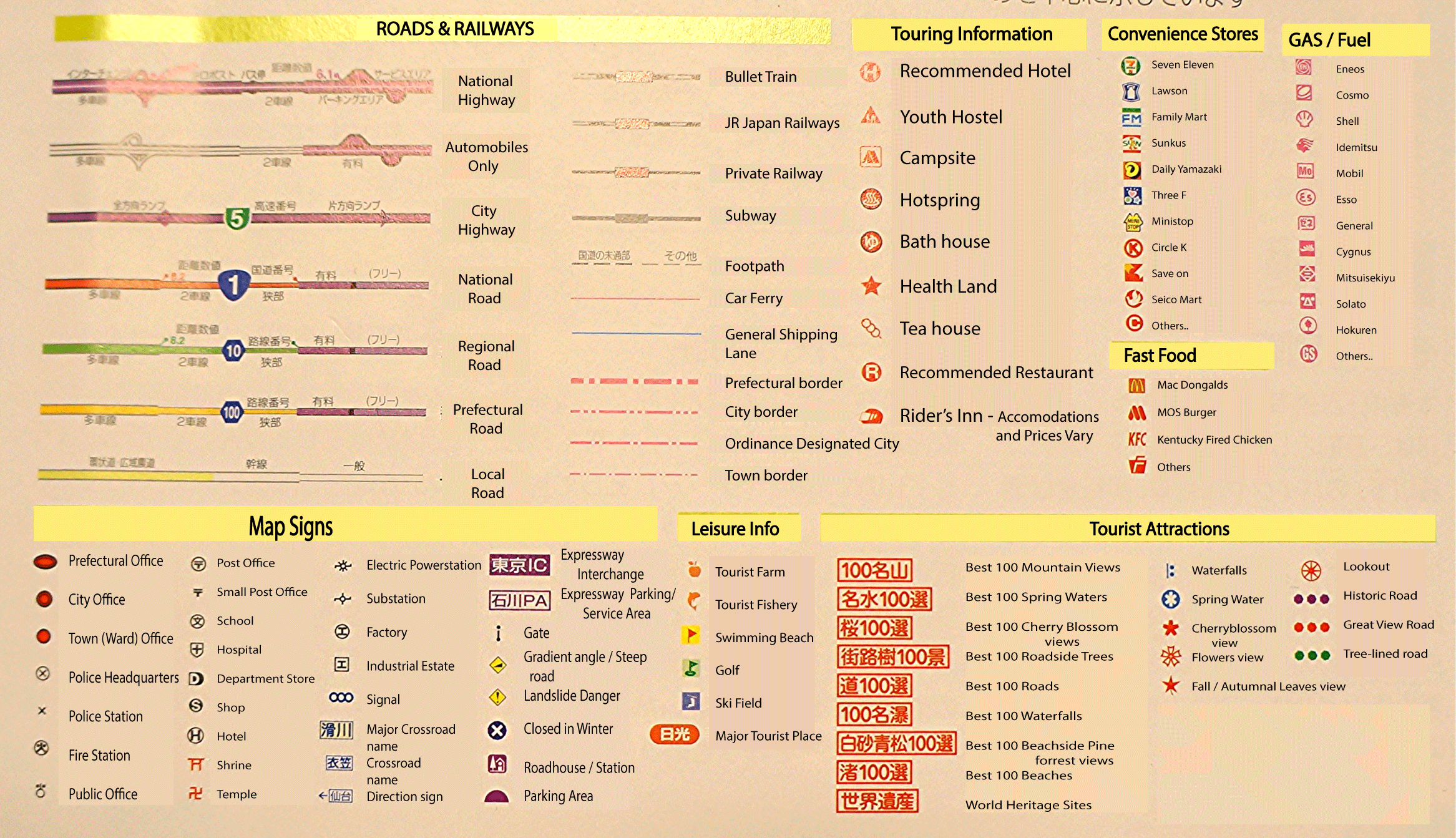 There is a wealth of information about where to ride but of course it is all in Japanese. There is a series of touring maps produced specifically for motorcycle touring in Japan which you can figure out with a little time no matter what language you speak.
