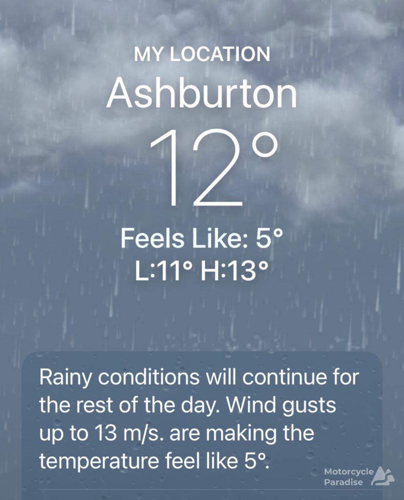 My last ride on the South Island I was caught out by a cold freeze in March which I was advised was the best month to ride. So this time I’m going February which (in theory) is still summer but I’ve brought my Merlin laminated riding gear as well some warm things.