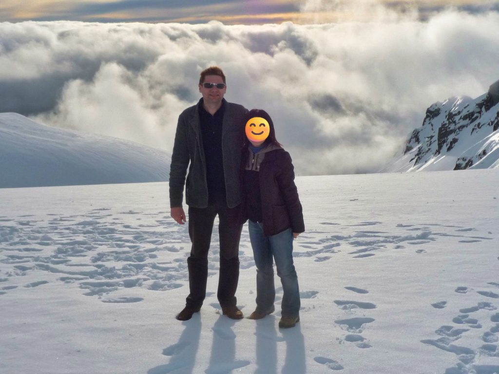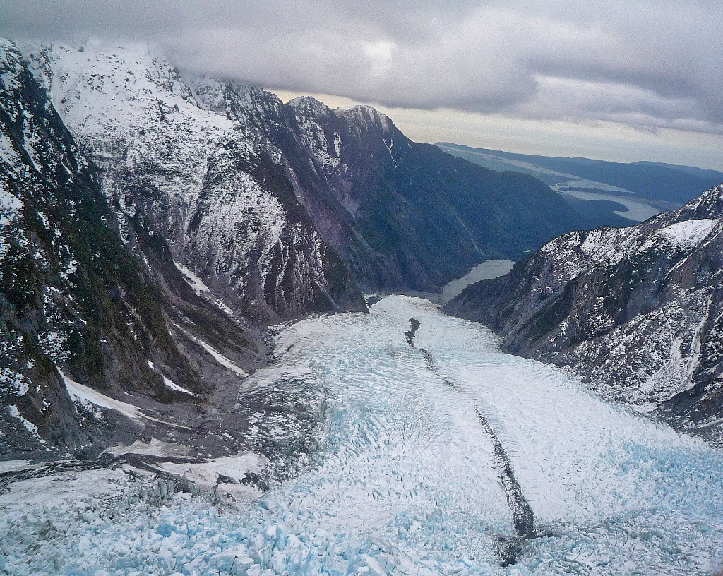 About 20 years ago driving to Milford Sound; On top of Mt Cook (by chopper); Looking down on the Fox Glacier.